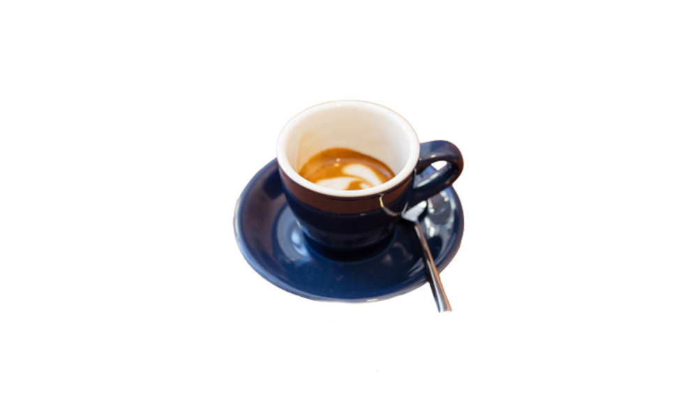 Espresso “marked” with a touch of milk foam, gently softening the intensity without hiding its character.
