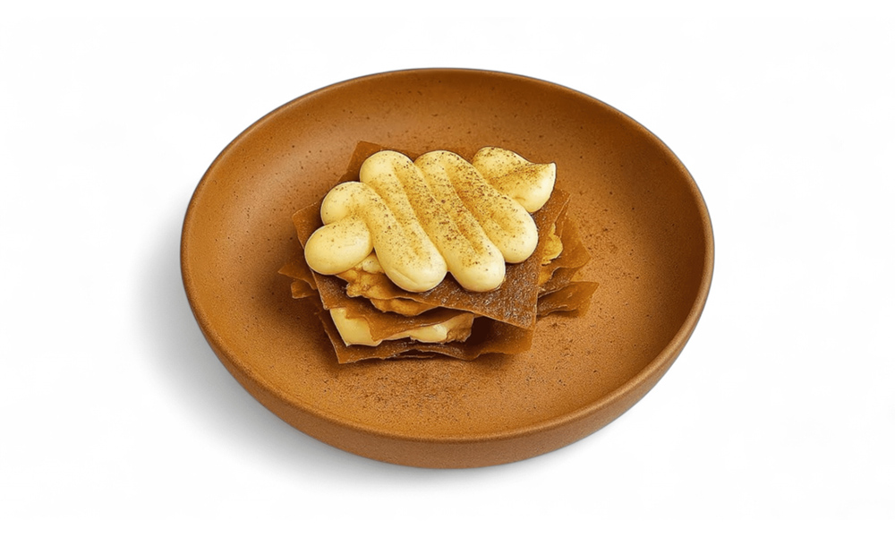 Crispy filo pastry with patisserie cream and cinnamon sugar