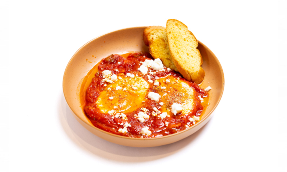 σάλτσα ντομάτας, φέτα & φρυγανισμένο ψωμί